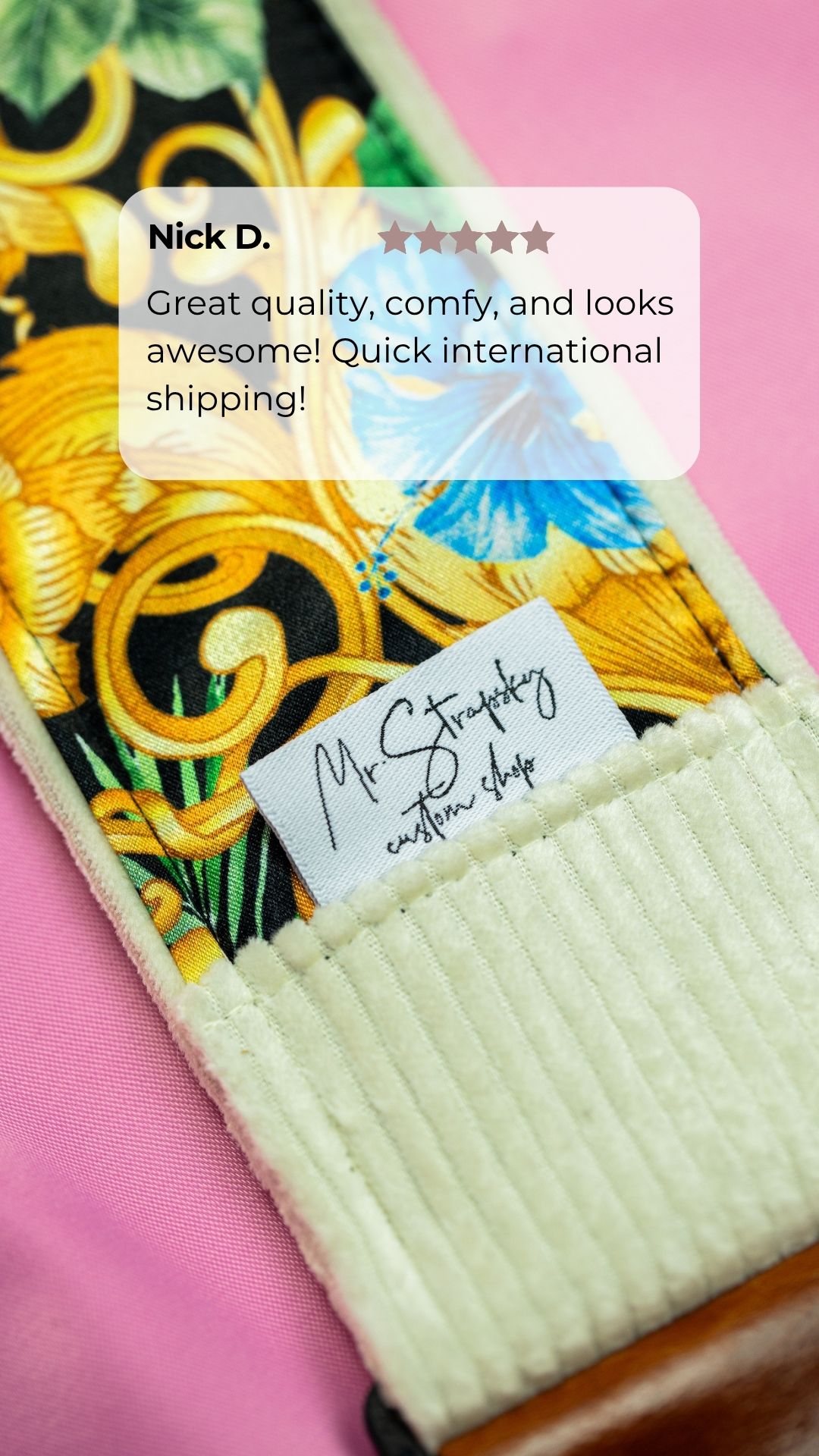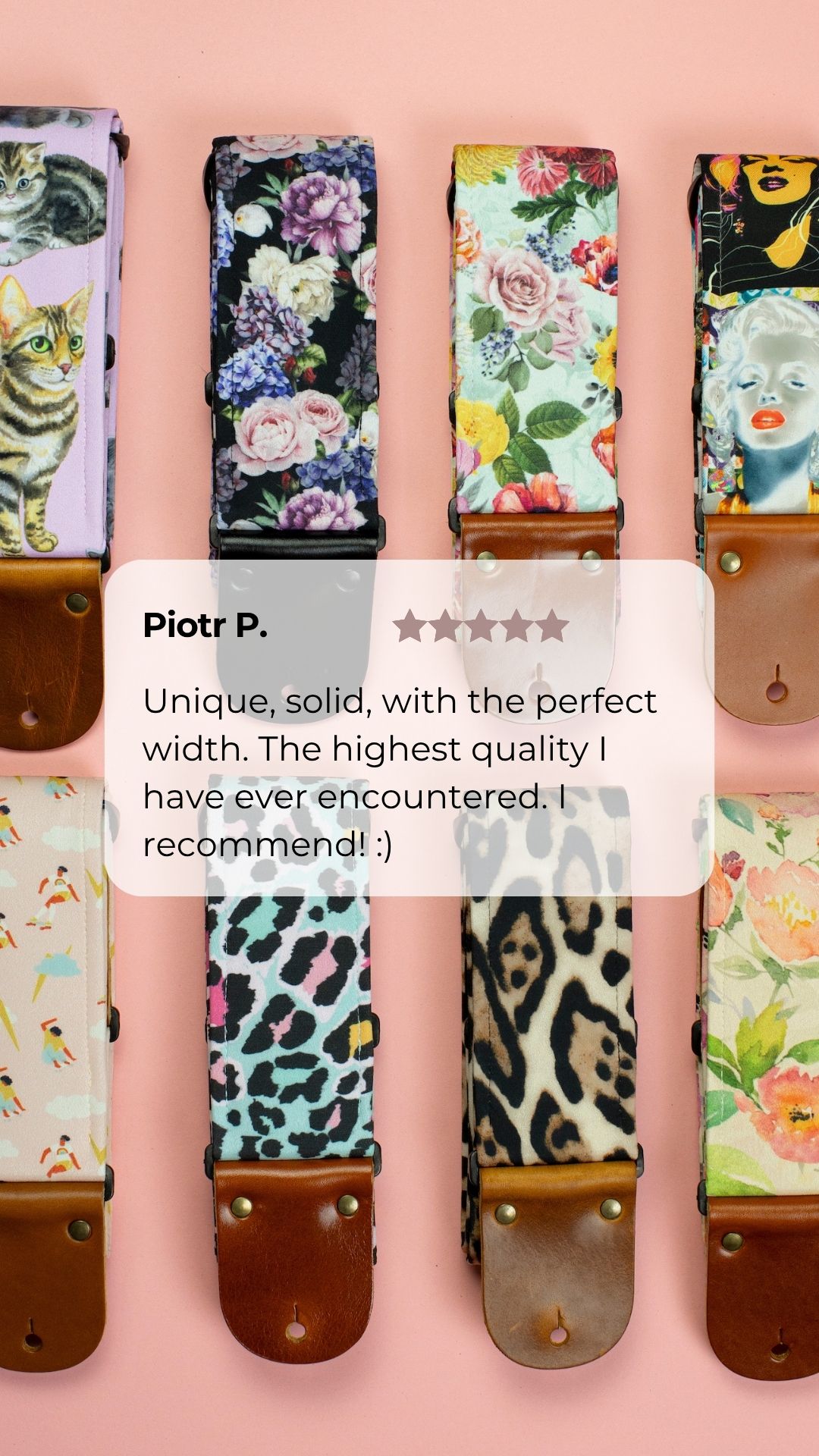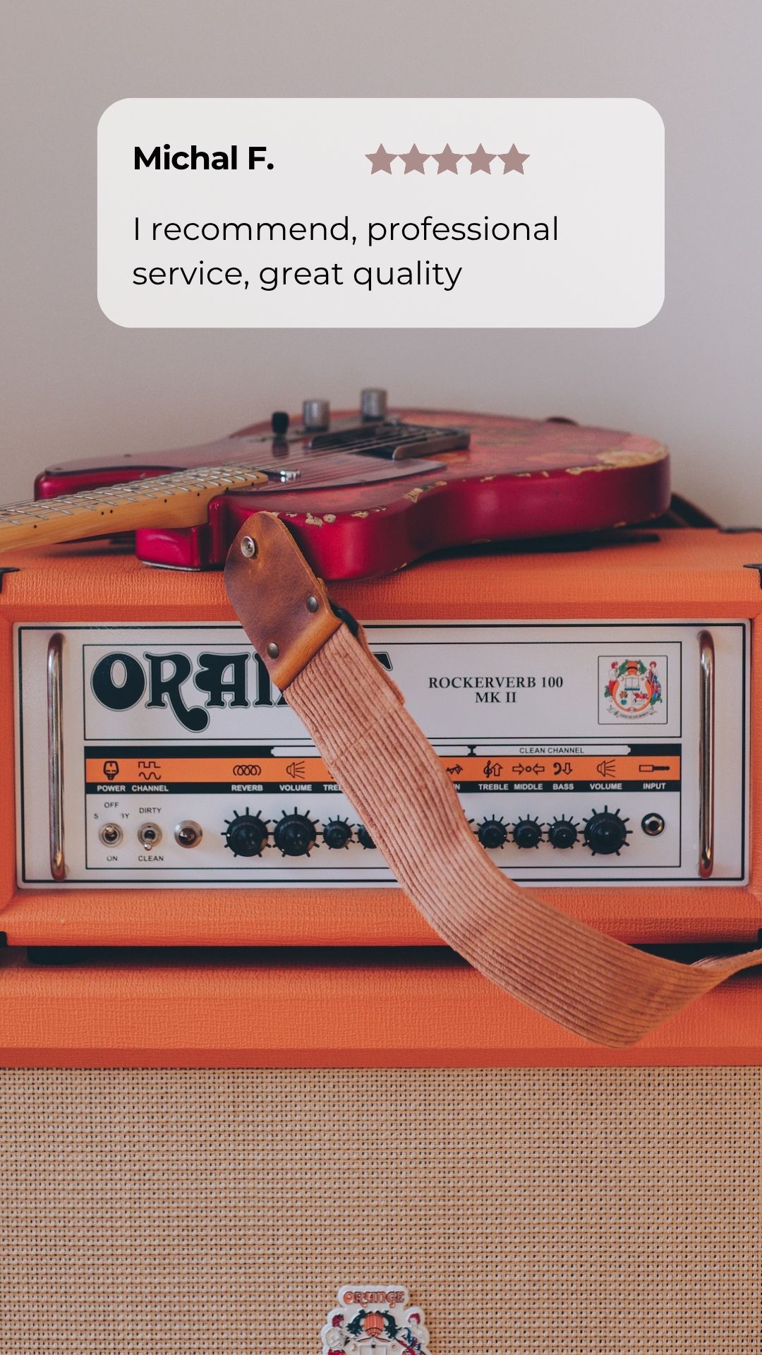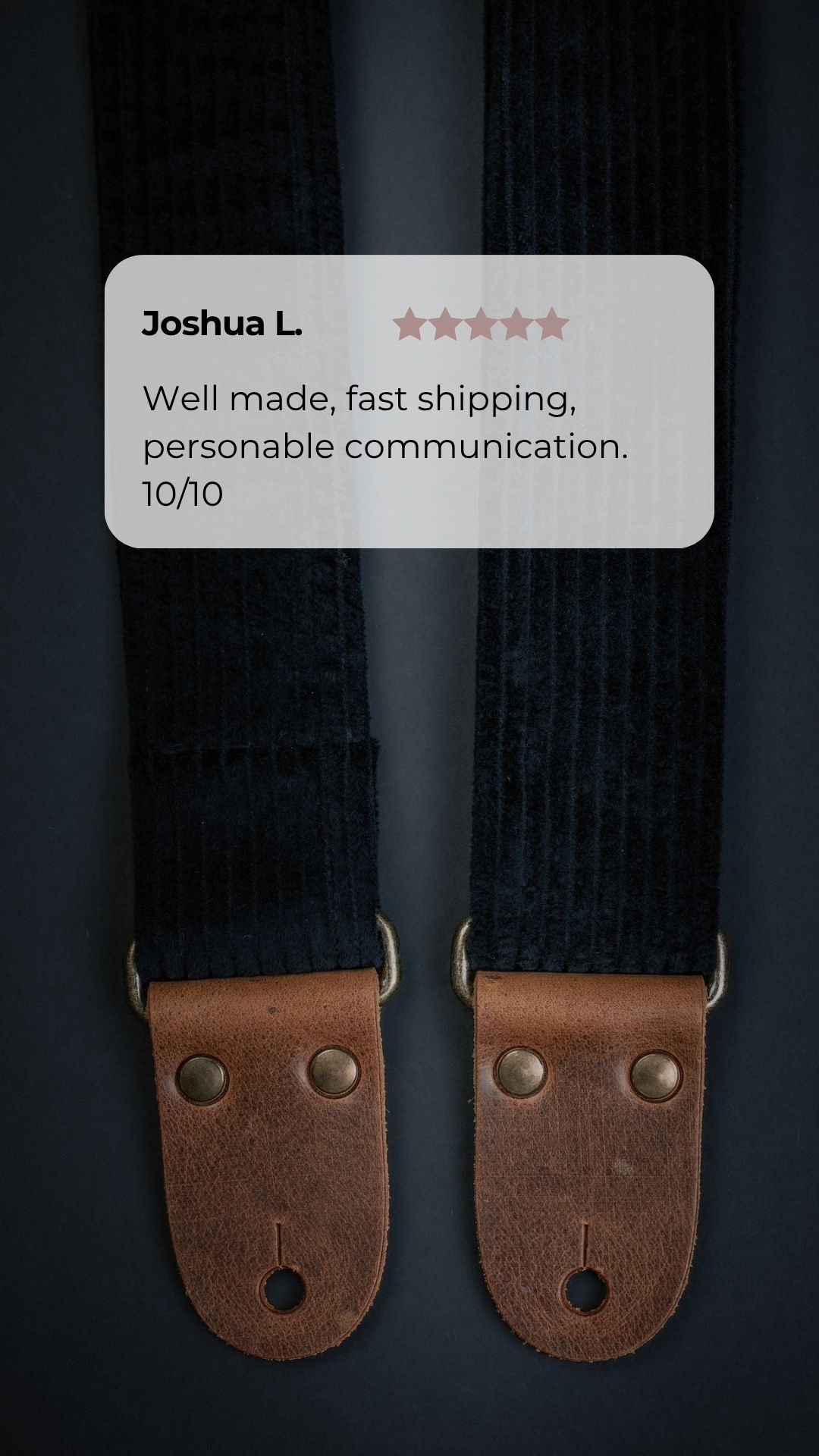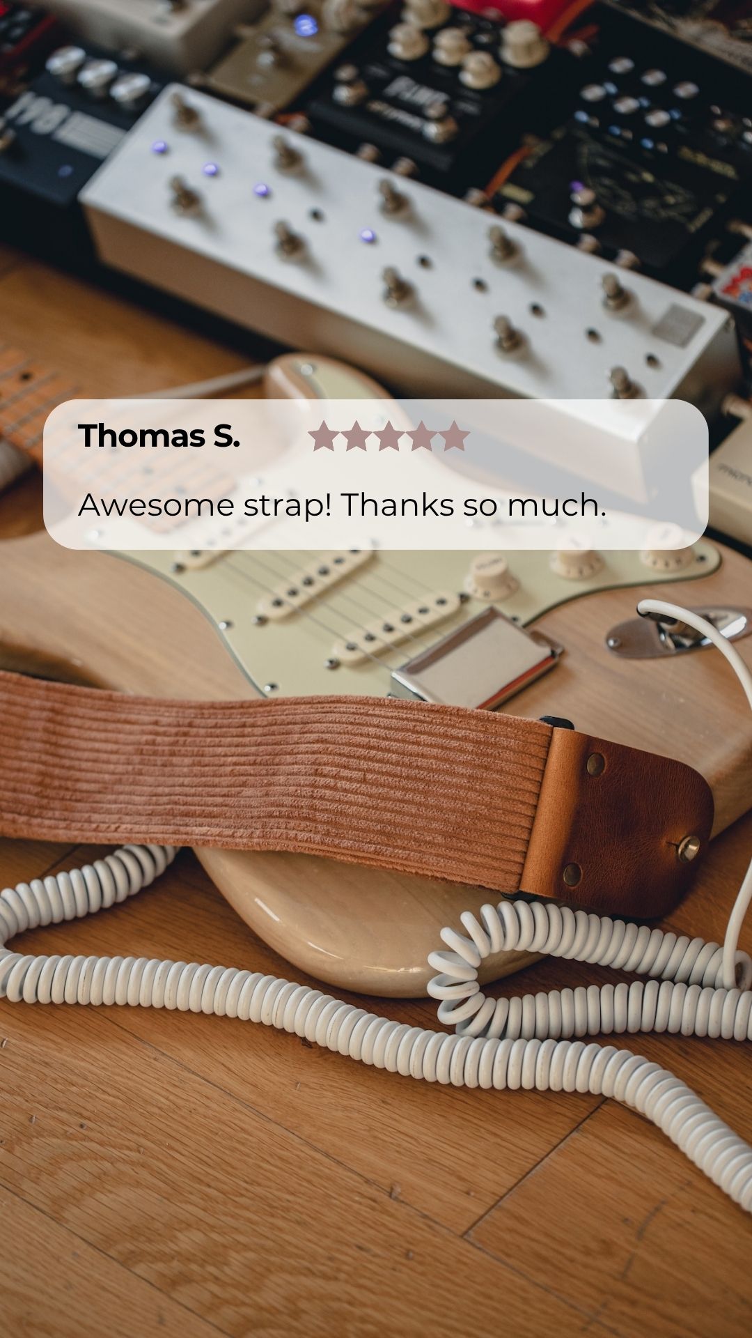 Every review you see here is 100% real written by musicians who actually play, tour, and record with my straps. You can check them any time on Mr. Strapsky Reverb or Google. This whole thing keeps growing naturally, word of mouth, no tricks. One word pops up again and again in those reviews: quality and that’s not by accident. From day one, I’ve tried to make straps that do more than just hold a guitar. Each one’s made by hand, with care, and solid materials, because I really believe every player deserves something reliable, comfortable, and made to last people keep saying the same things. That the leather is super soft, the stitching stays strong for years and the designs actually stand out. It’s not just about how they look. They talk about how the straps of Mr. Strapsky feel after hours of playing and for me, that’s huge. Whether you’re gigging all the time or just playing at home, that kind of comfort matters and so does trust.