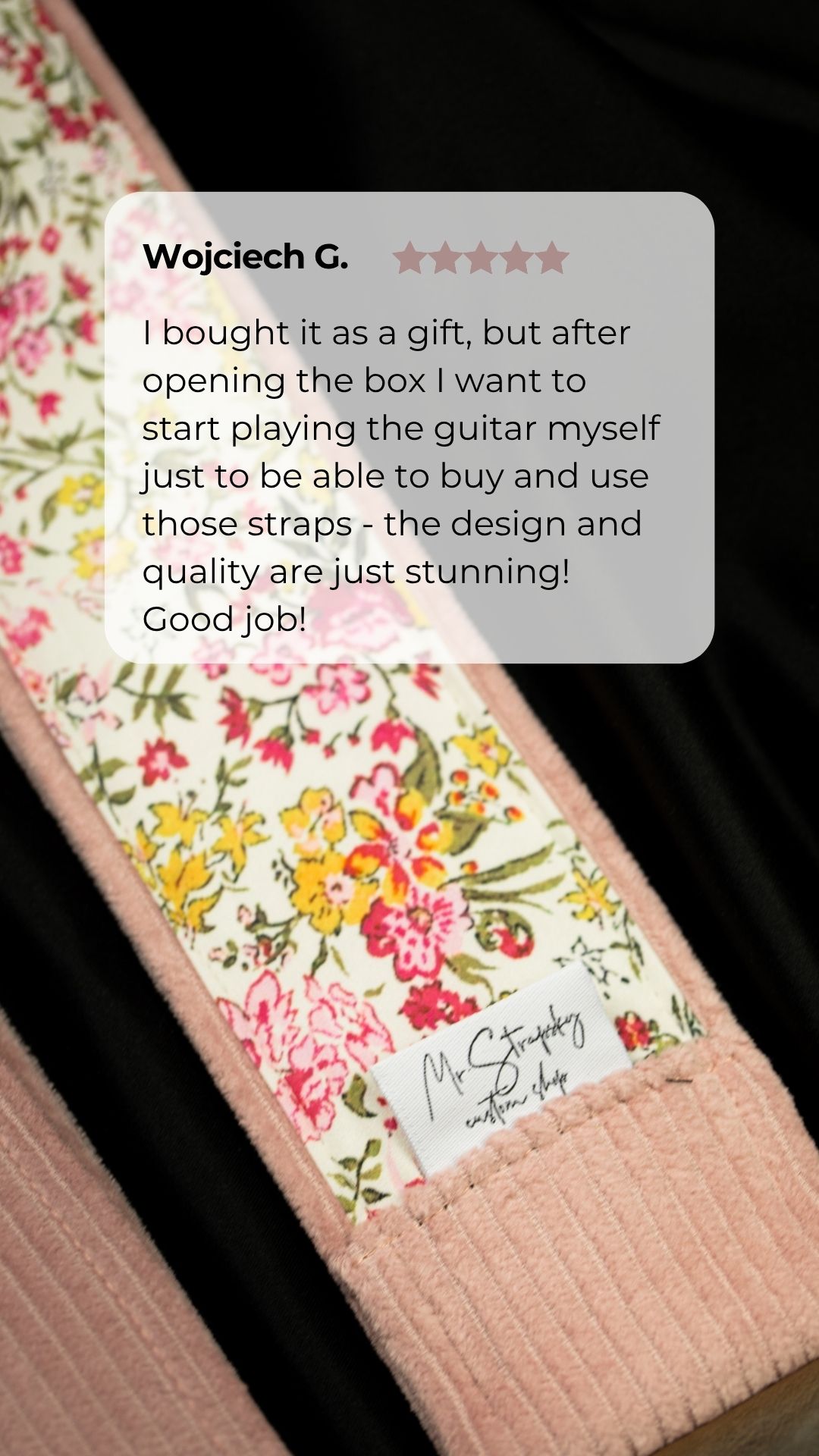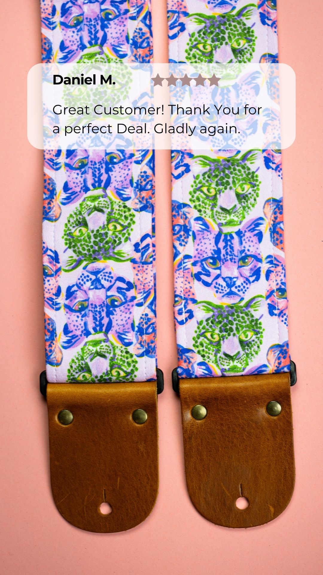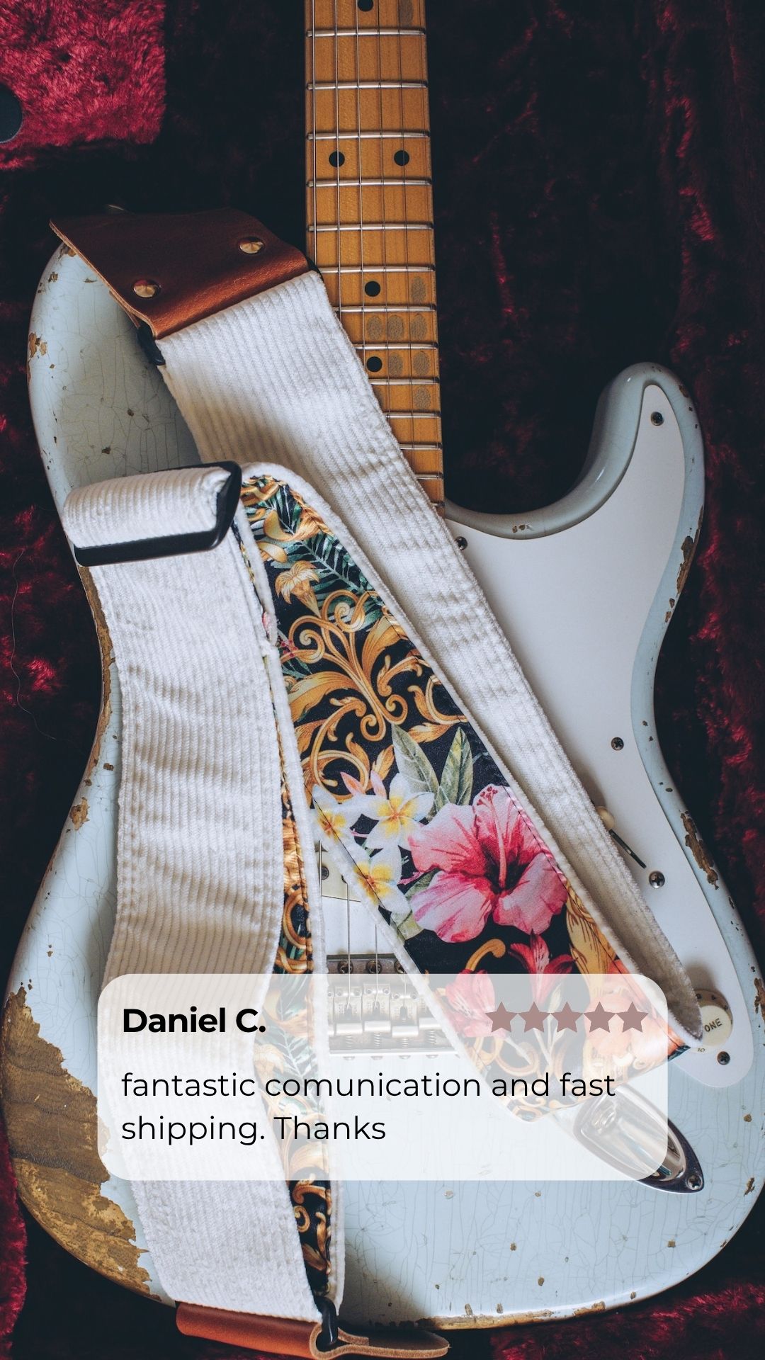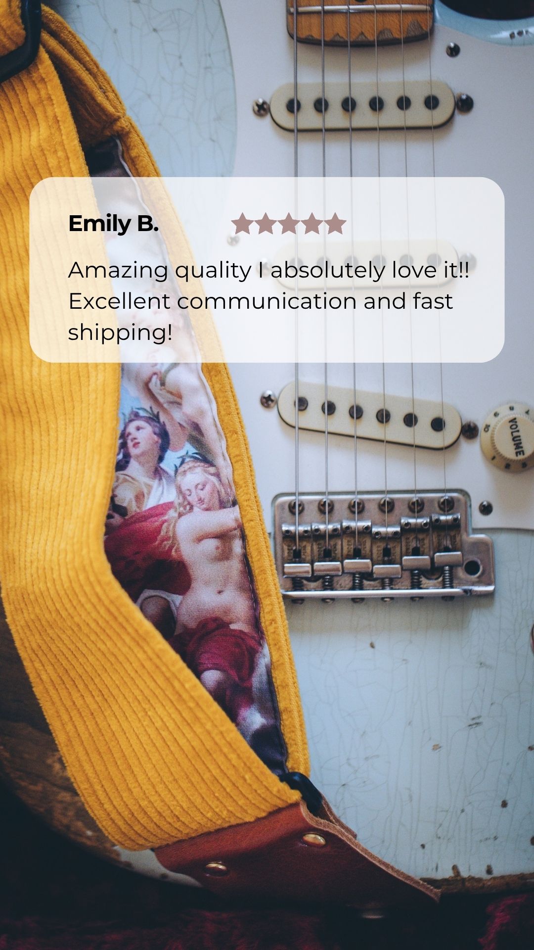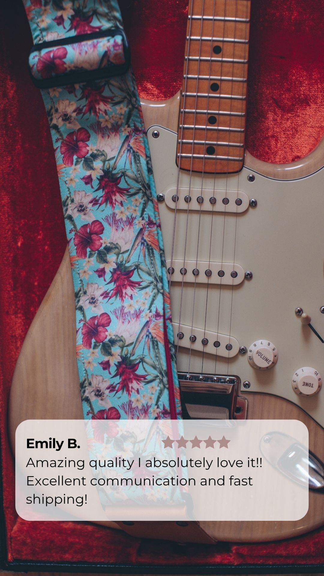Every review you see here is 100% real written by musicians who actually play, tour, and record with my straps. You can check them any time on Mr. Strapsky Reverb or Google. This whole thing keeps growing naturally, word of mouth, no tricks. One word pops up again and again in those reviews: quality and that’s not by accident. From day one, I’ve tried to make straps that do more than just hold a guitar. Each one’s made by hand, with care, and solid materials, because I really believe every player deserves something reliable, comfortable, and made to last people keep saying the same things. That the leather is super soft, the stitching stays strong for years and the designs actually stand out. It’s not just about how they look. They talk about how the straps of Mr. Strapsky feel after hours of playing and for me, that’s huge. Whether you’re gigging all the time or just playing at home, that kind of comfort matters and so does trust.
