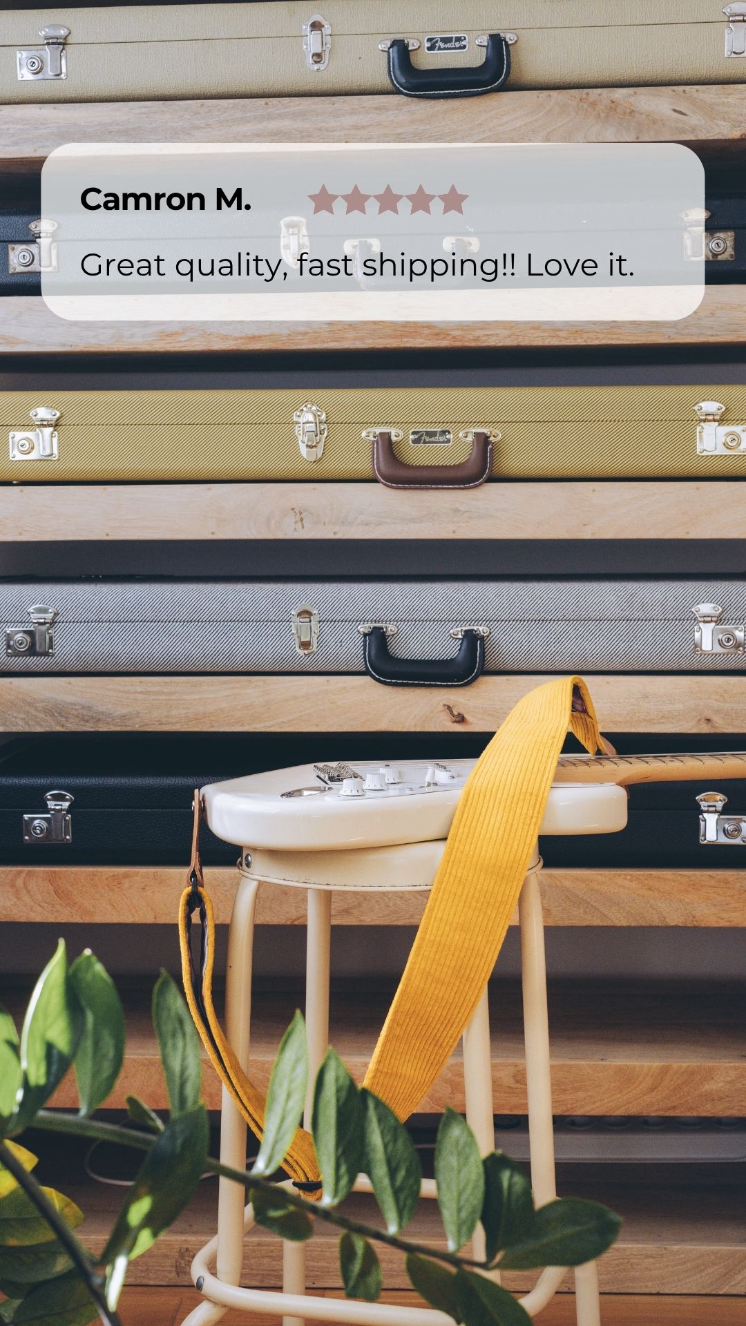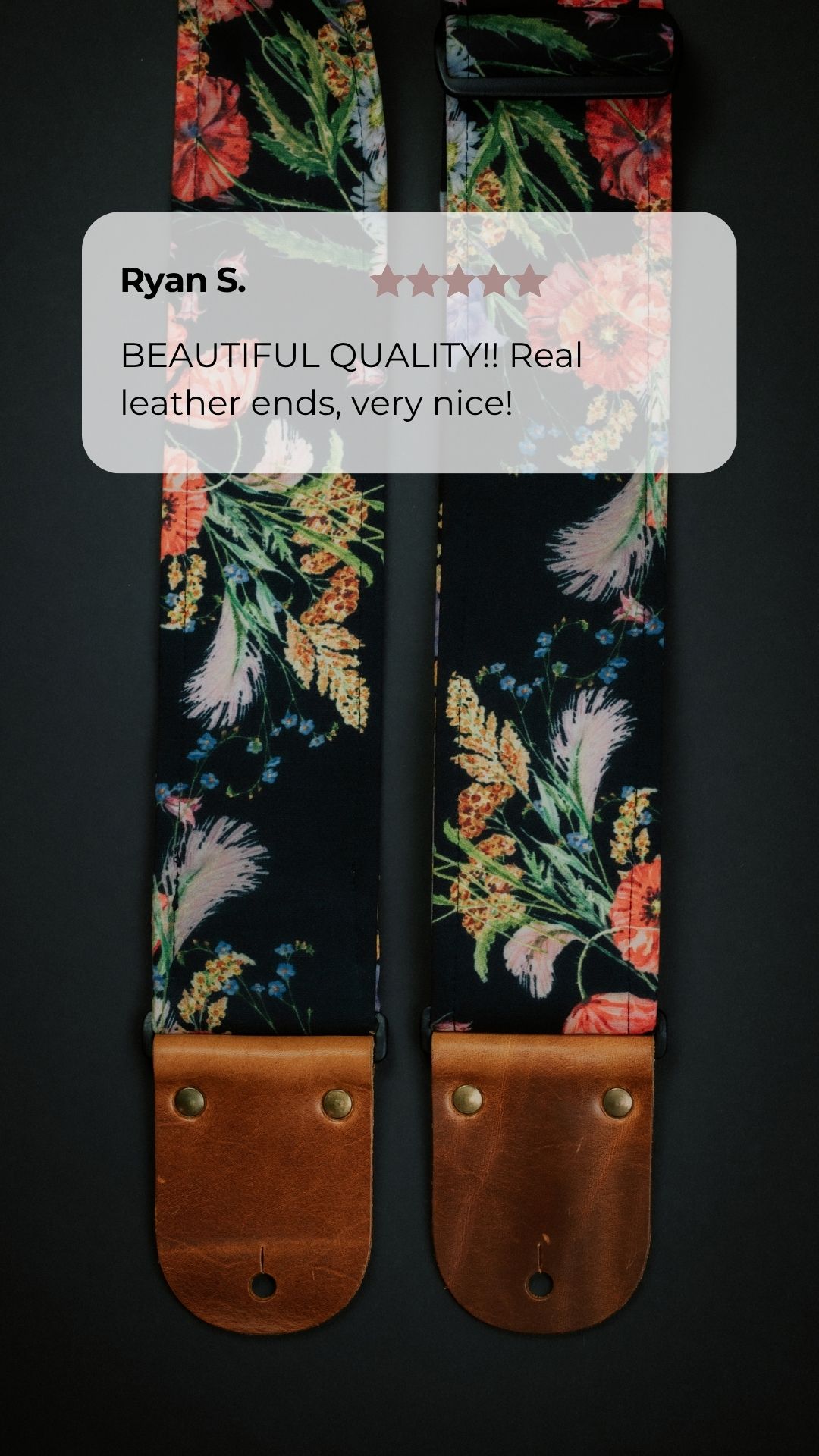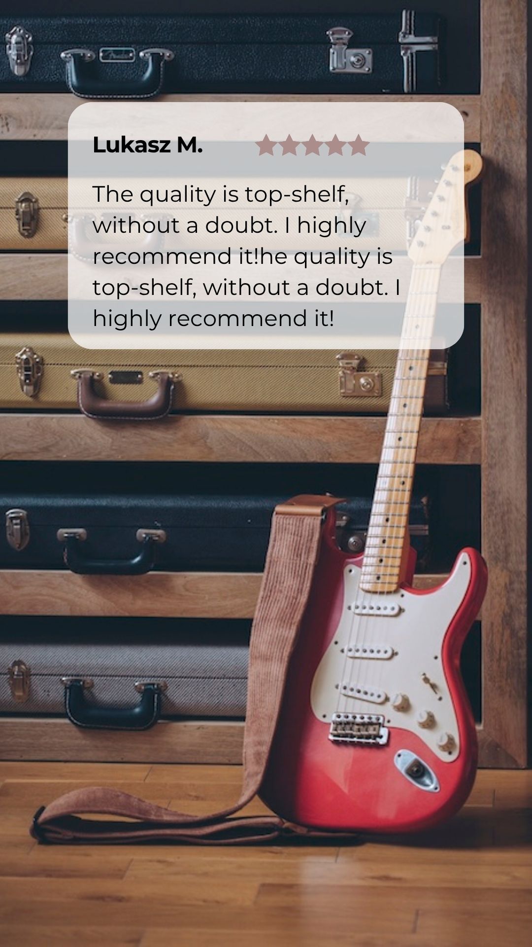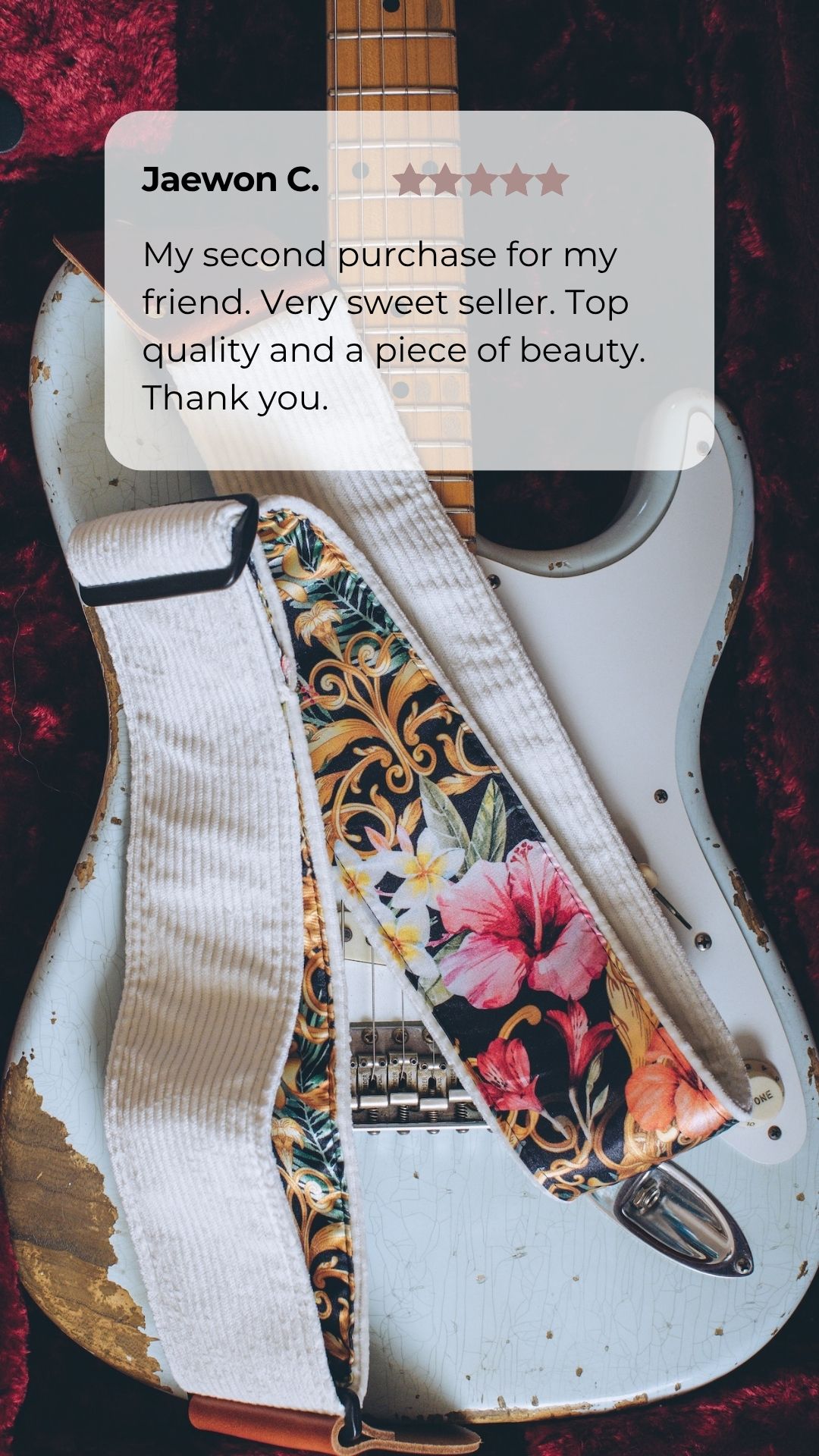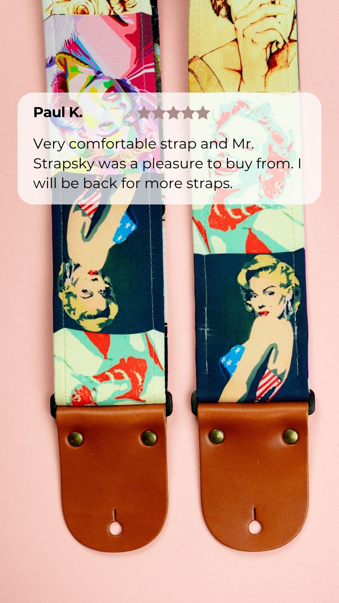 Every review you see here is 100% real written by musicians who actually play, tour, and record with my straps. You can check them any time on Mr. Strapsky Reverb or Google. This whole thing keeps growing naturally, word of mouth, no tricks. One word pops up again and again in those reviews: quality and that’s not by accident. From day one, I’ve tried to make straps that do more than just hold a guitar. Each one’s made by hand, with care, and solid materials, because I really believe every player deserves something reliable, comfortable, and made to last people keep saying the same things. That the leather is super soft, the stitching stays strong for years and the designs actually stand out. It’s not just about how they look. They talk about how the straps of Mr. Strapsky feel after hours of playing and for me, that’s huge. Whether you’re gigging all the time or just playing at home, that kind of comfort matters and so does trust.