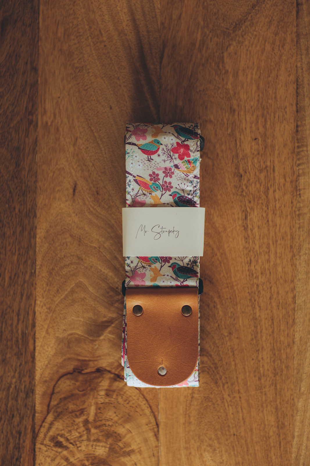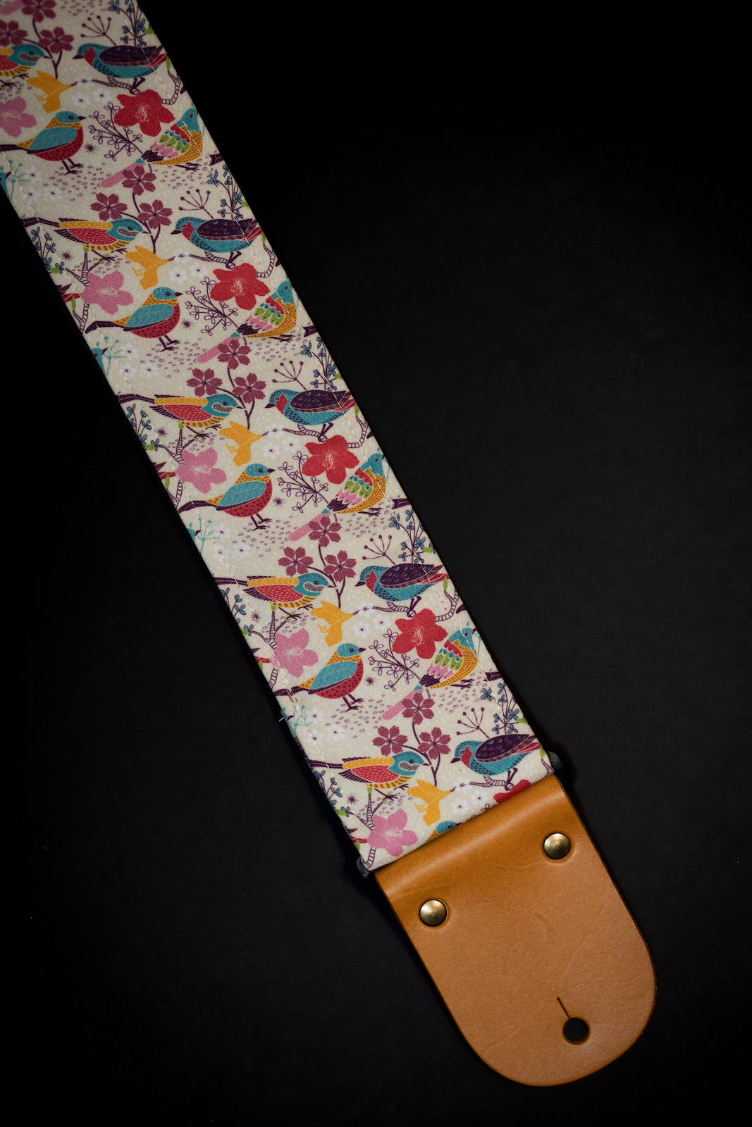 Birds Guitar Strap 3 inch with playful bird motif, premium fabrics, and reinforced polypropylene core. Comfortable, durable, and stylish.