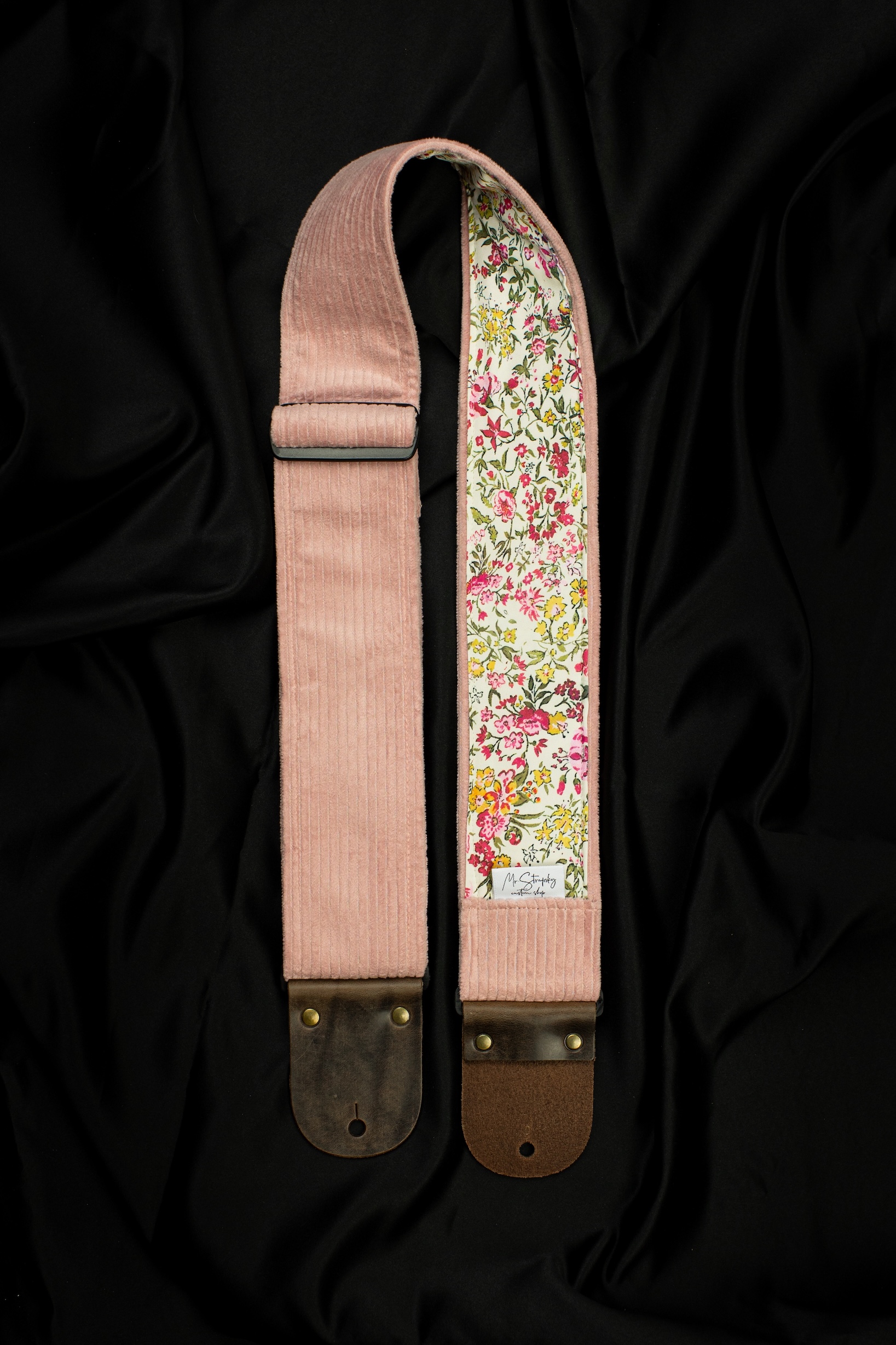 Handmade vintage guitar strap inspired by sunlit memories and blooming wildflowers. Designed by Mr. Strapsky’s Custom Shop with care, character, and soul.