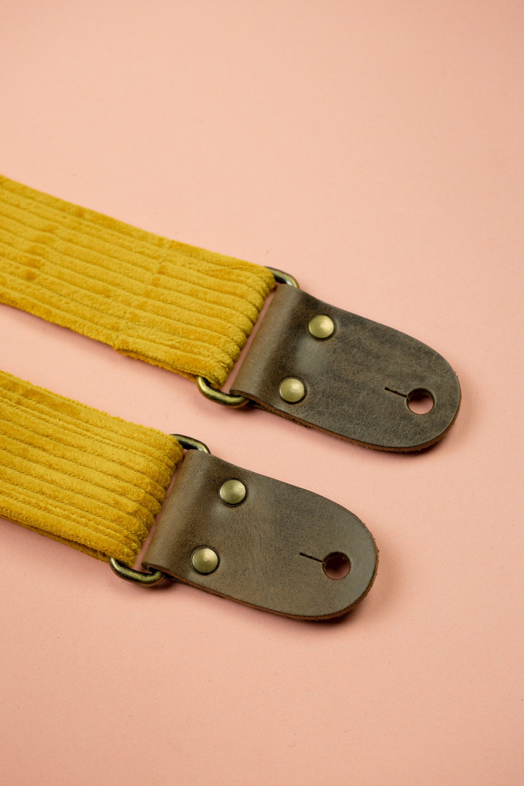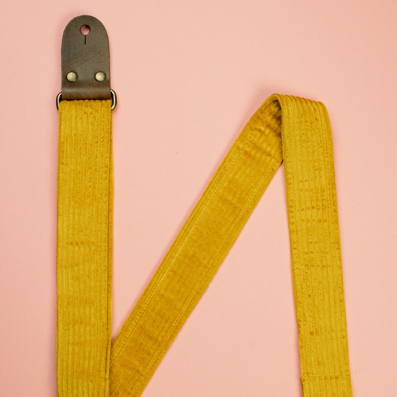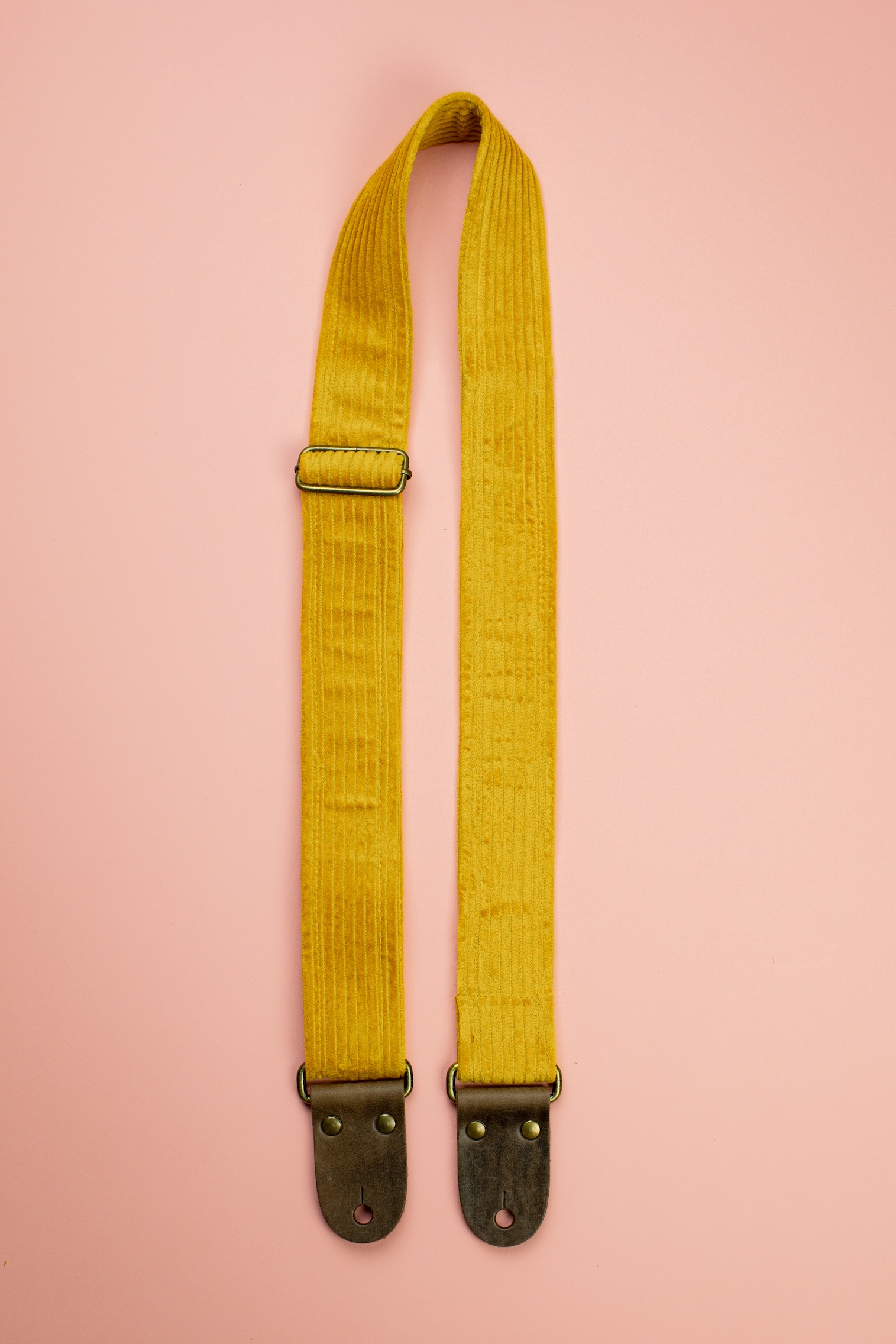 Classic feel with a vintage twist. This retro mustard guitar strap features soft corduroy, leather ends, and 2-inch strength for everyday performance.