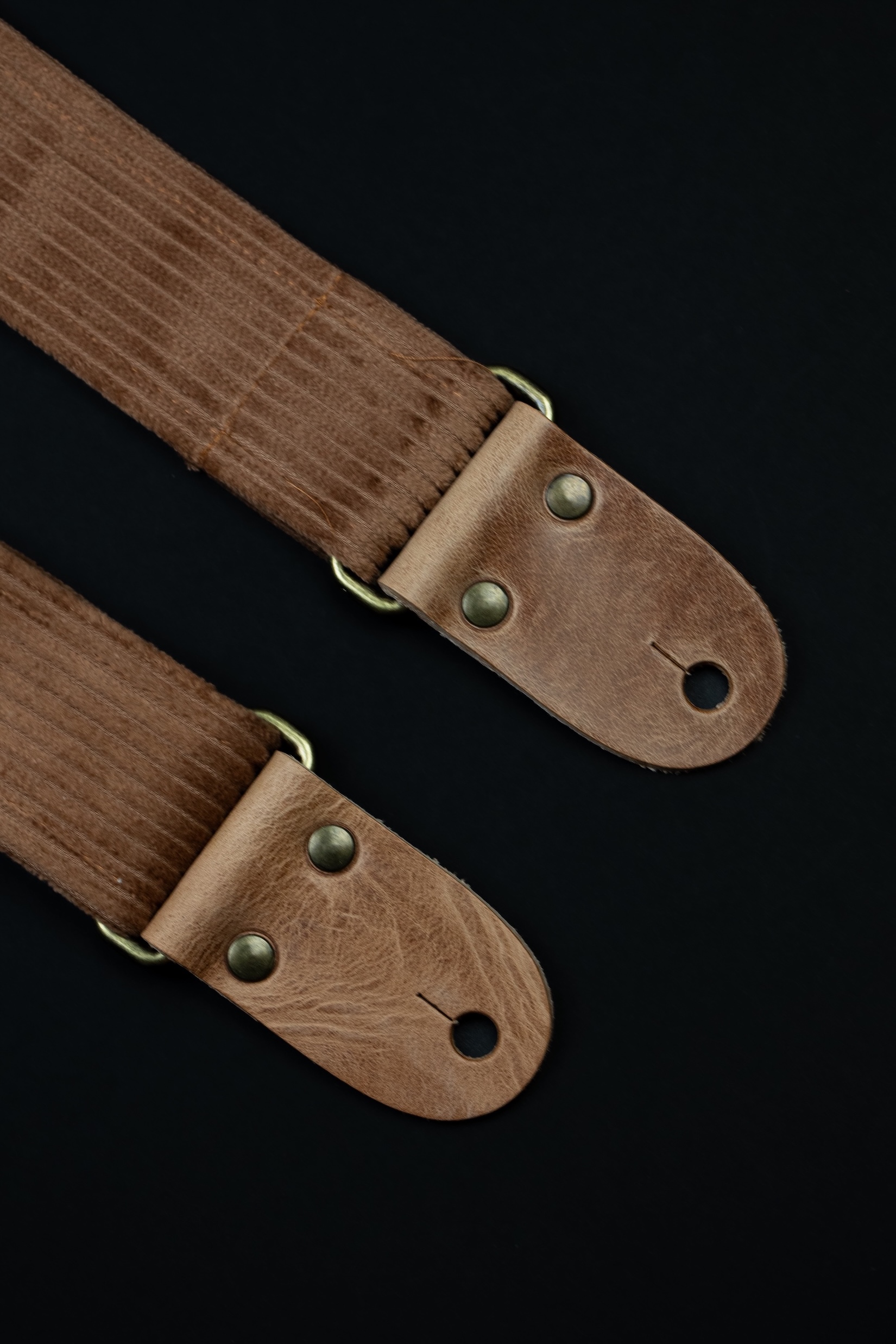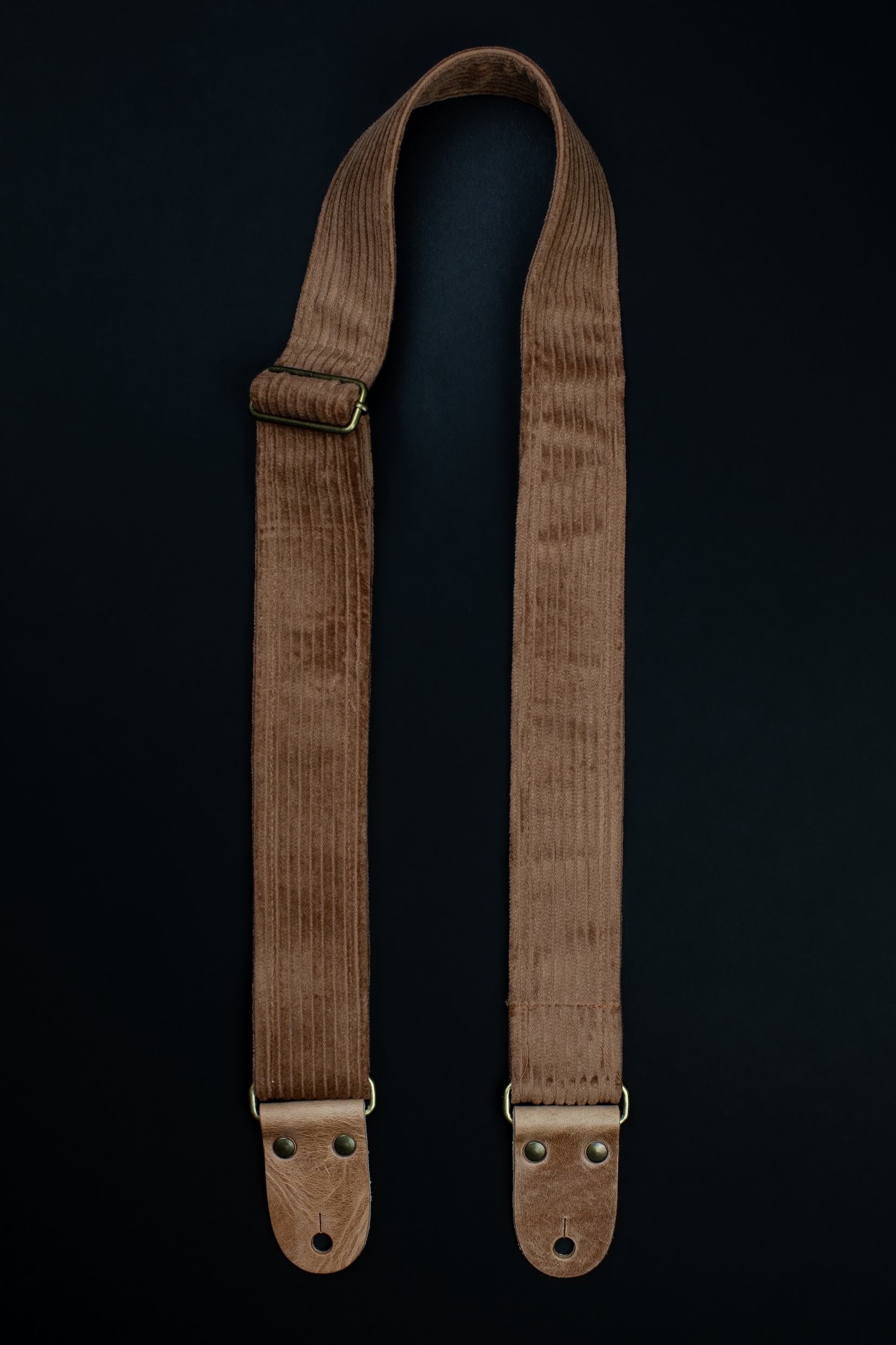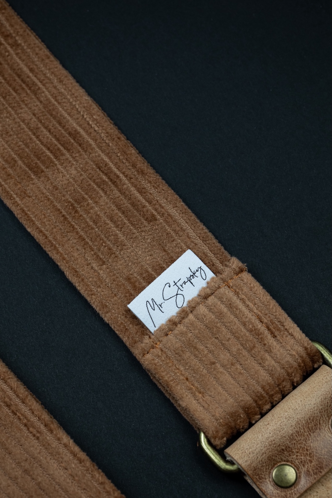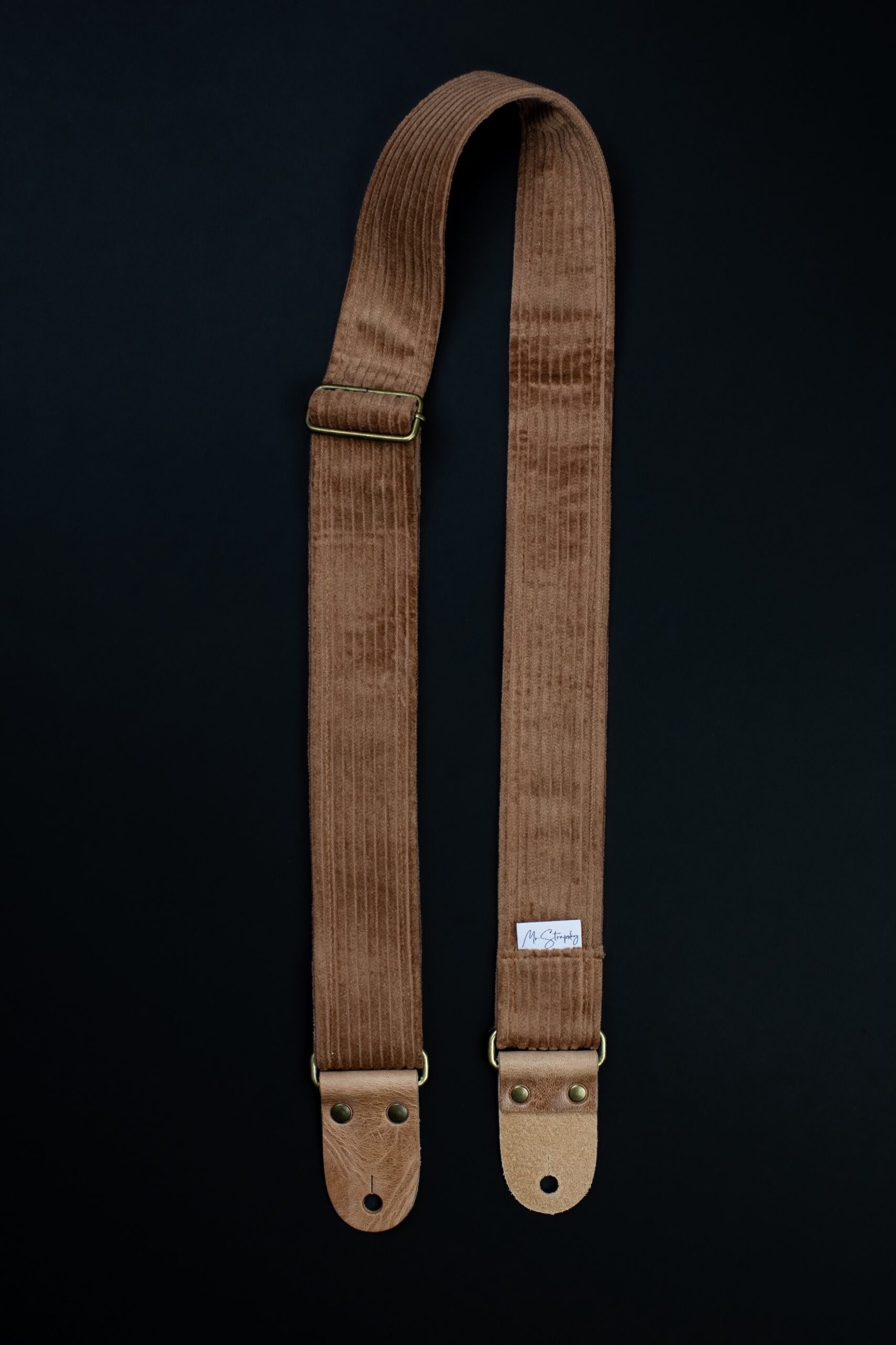 Vintage Corduroy Guitar Stap with Vintage Leather Ends. Mr.Strapsky guitar straps are covered with the best materials, from jaquard cloth to satin to bawega memory