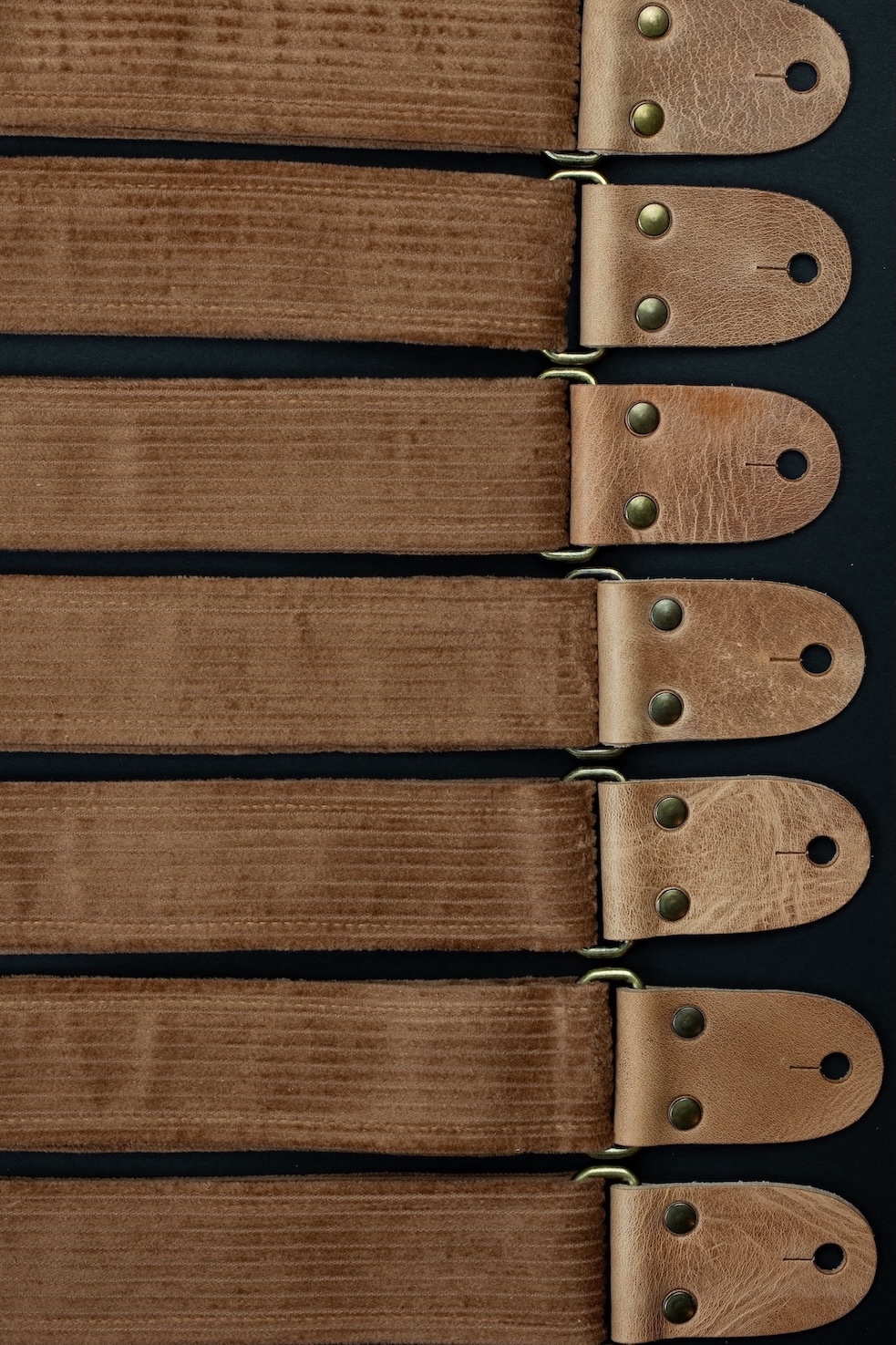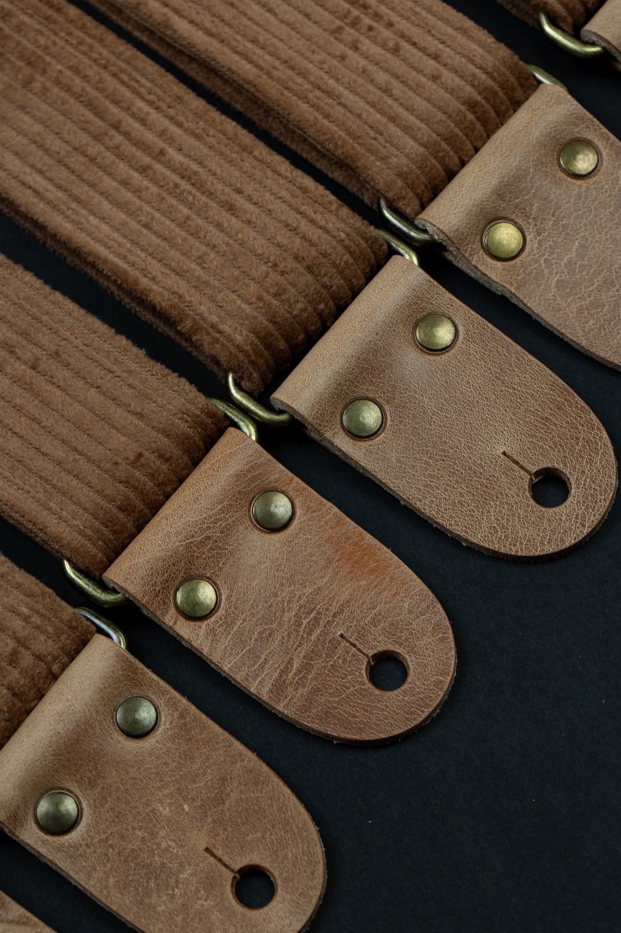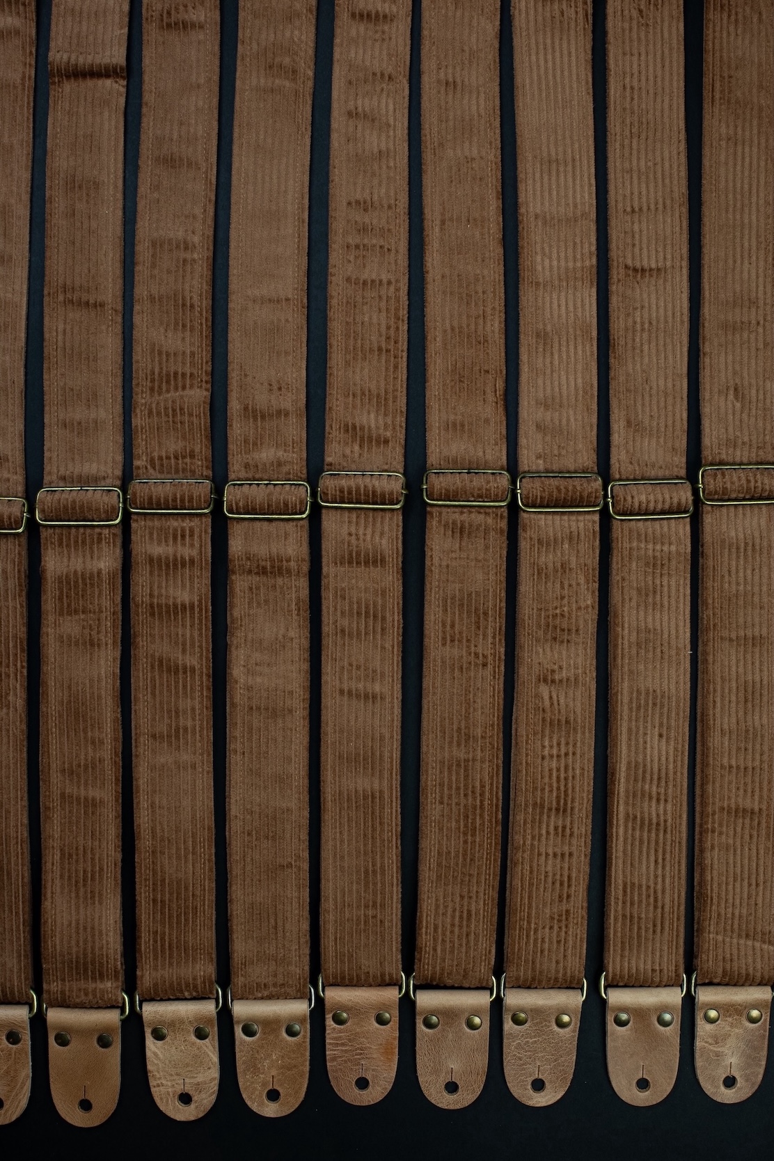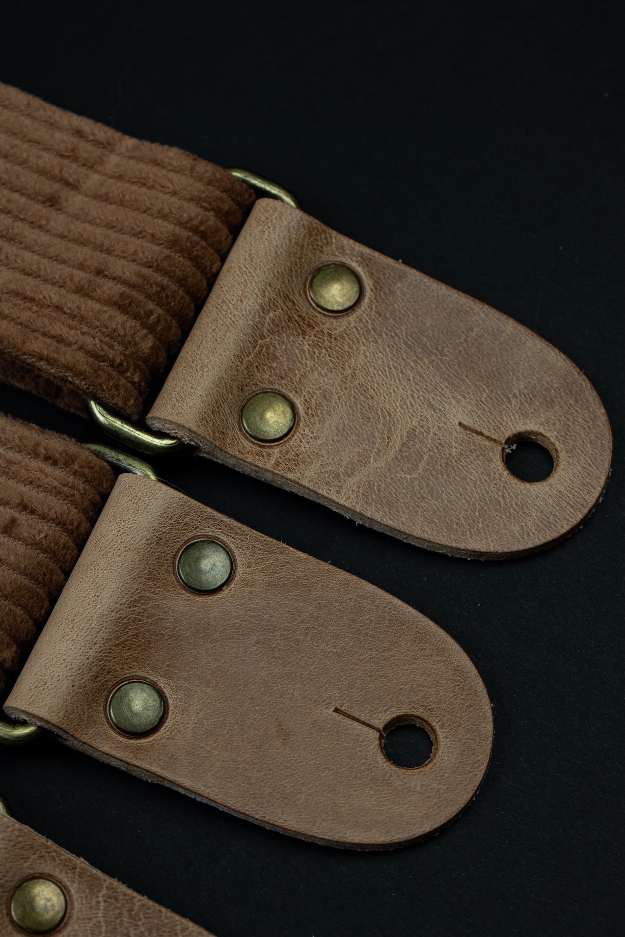Vintage Corduroy Guitar Stap with Vintage Leather Ends. Mr.Strapsky guitar straps are covered with the best materials, from jaquard cloth to satin to bawega memory