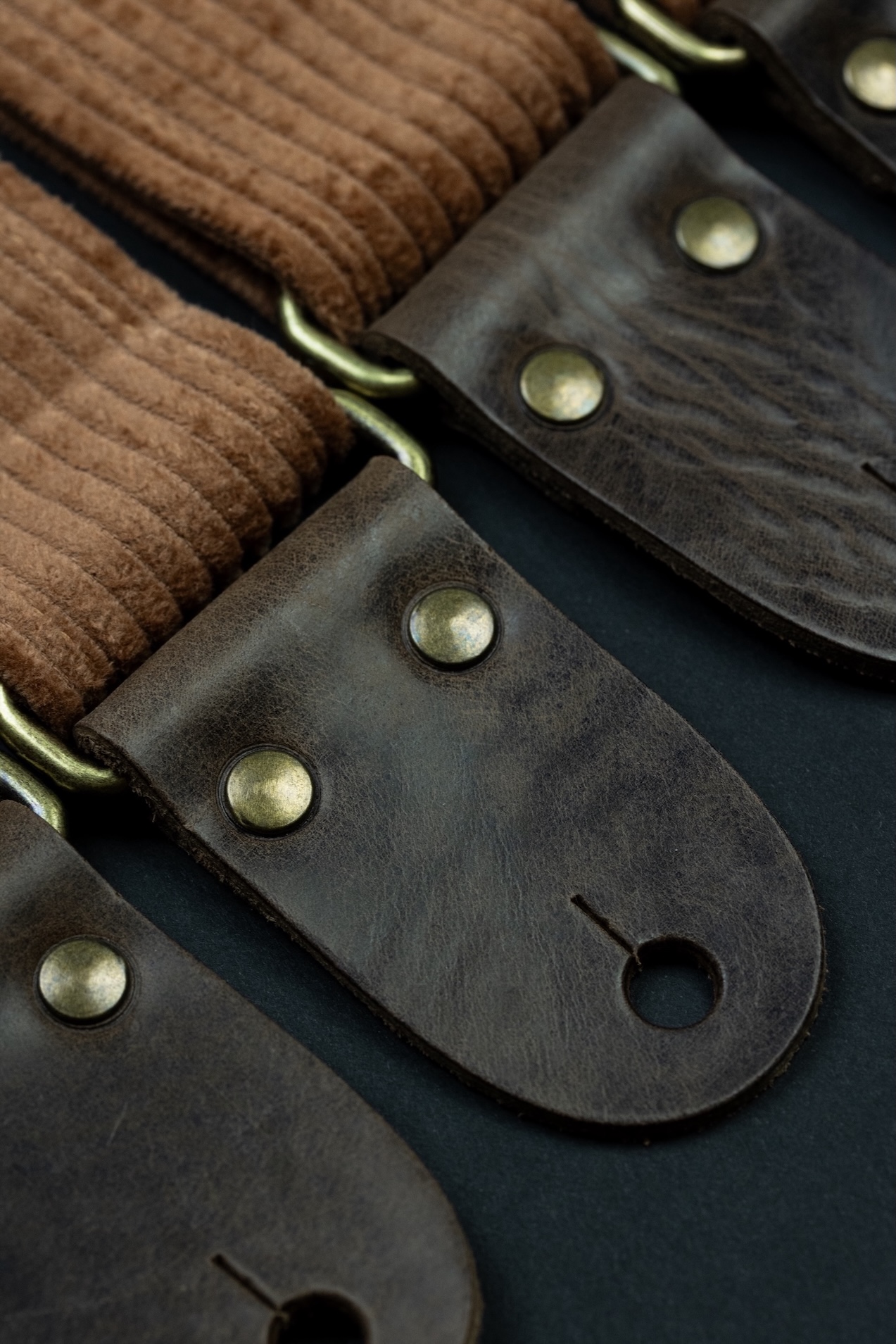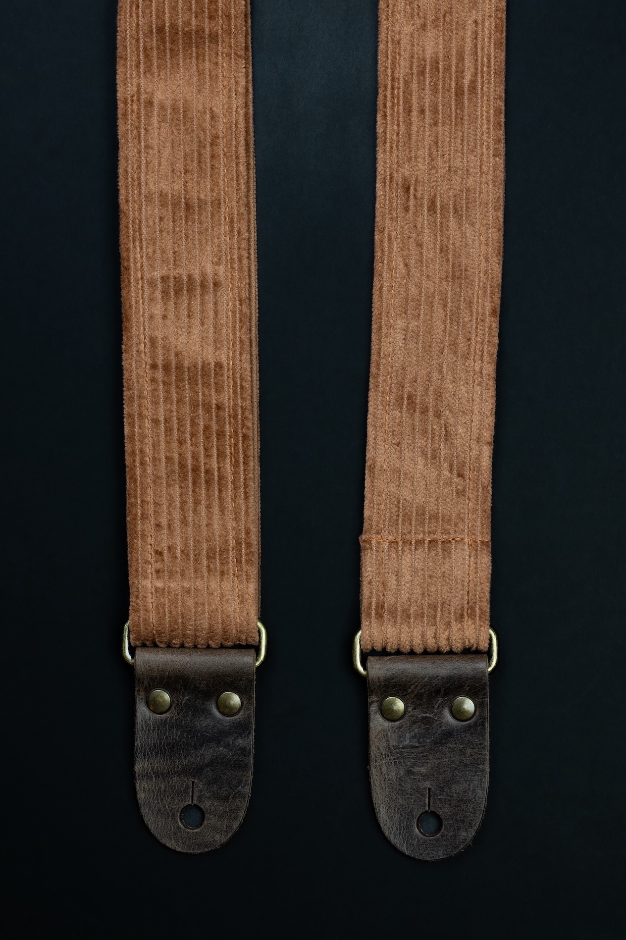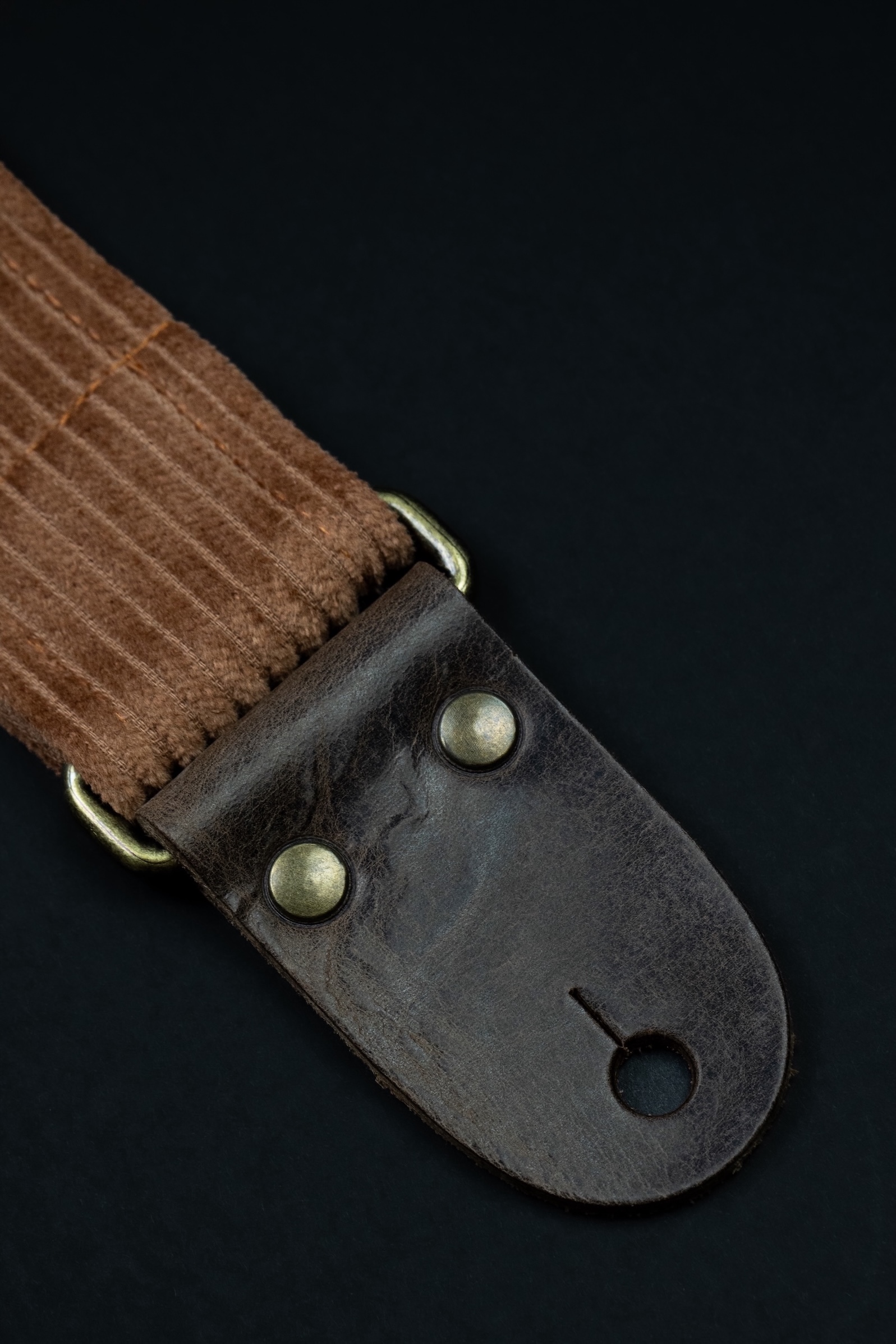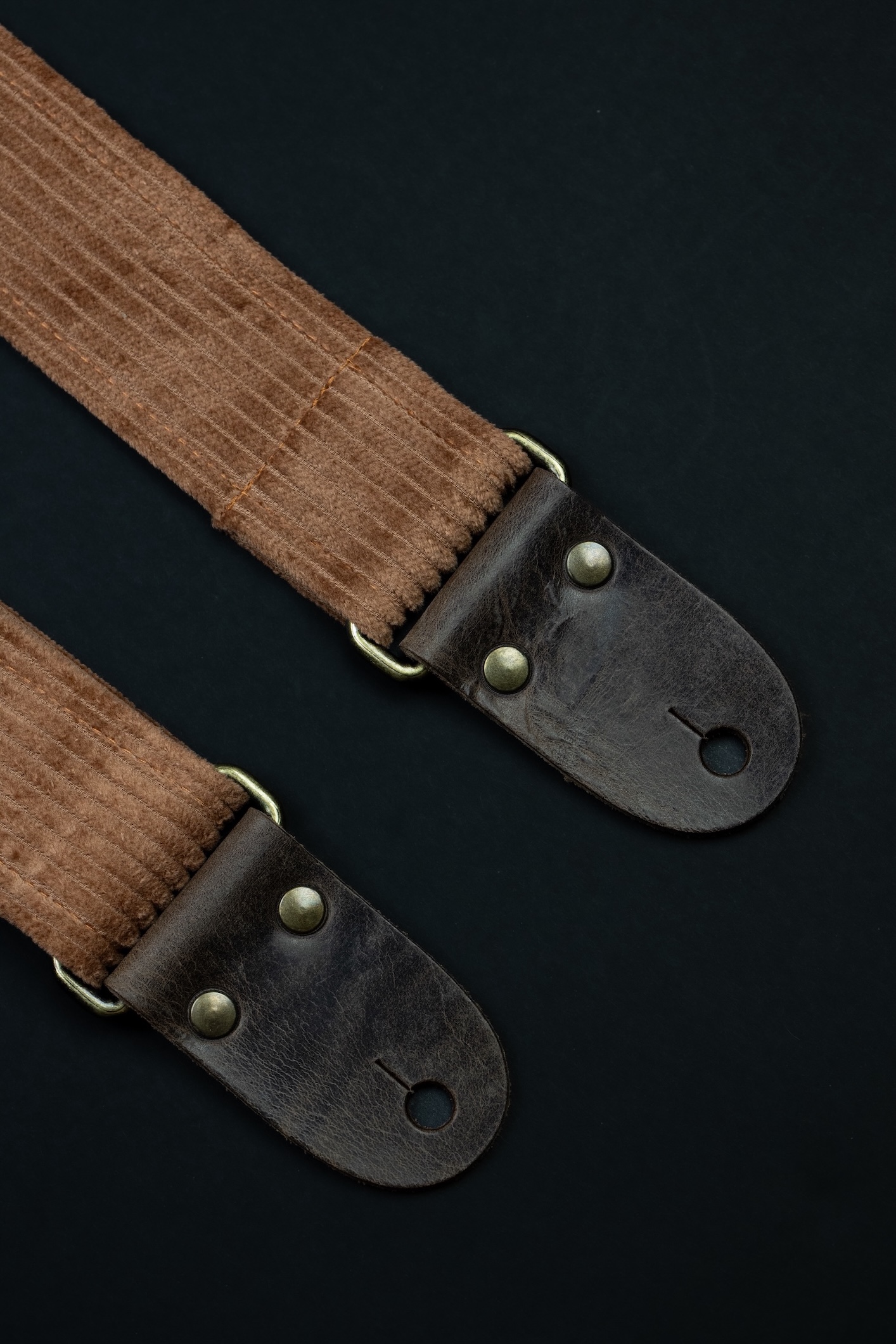 Classic corduroy guitar strap with vintage leather ends. Built to last, styled to stand out. Retro feel, modern durability.