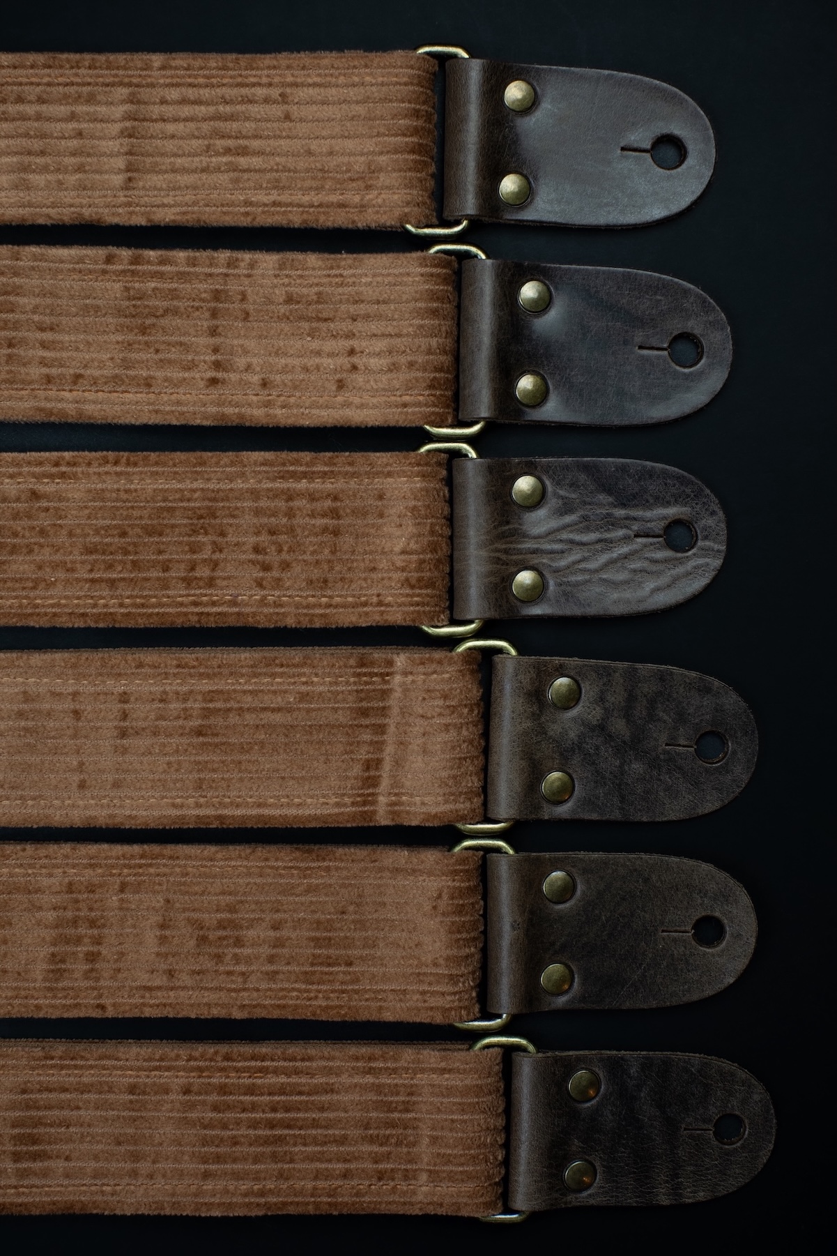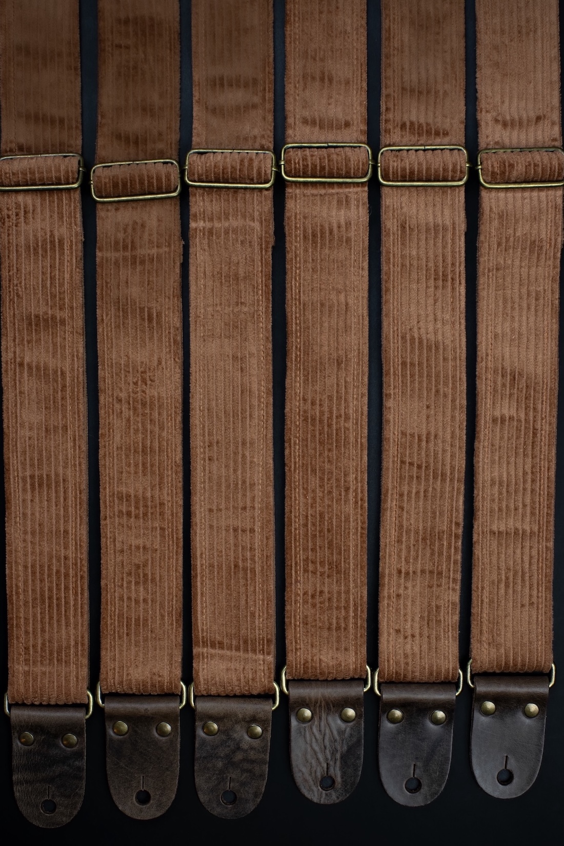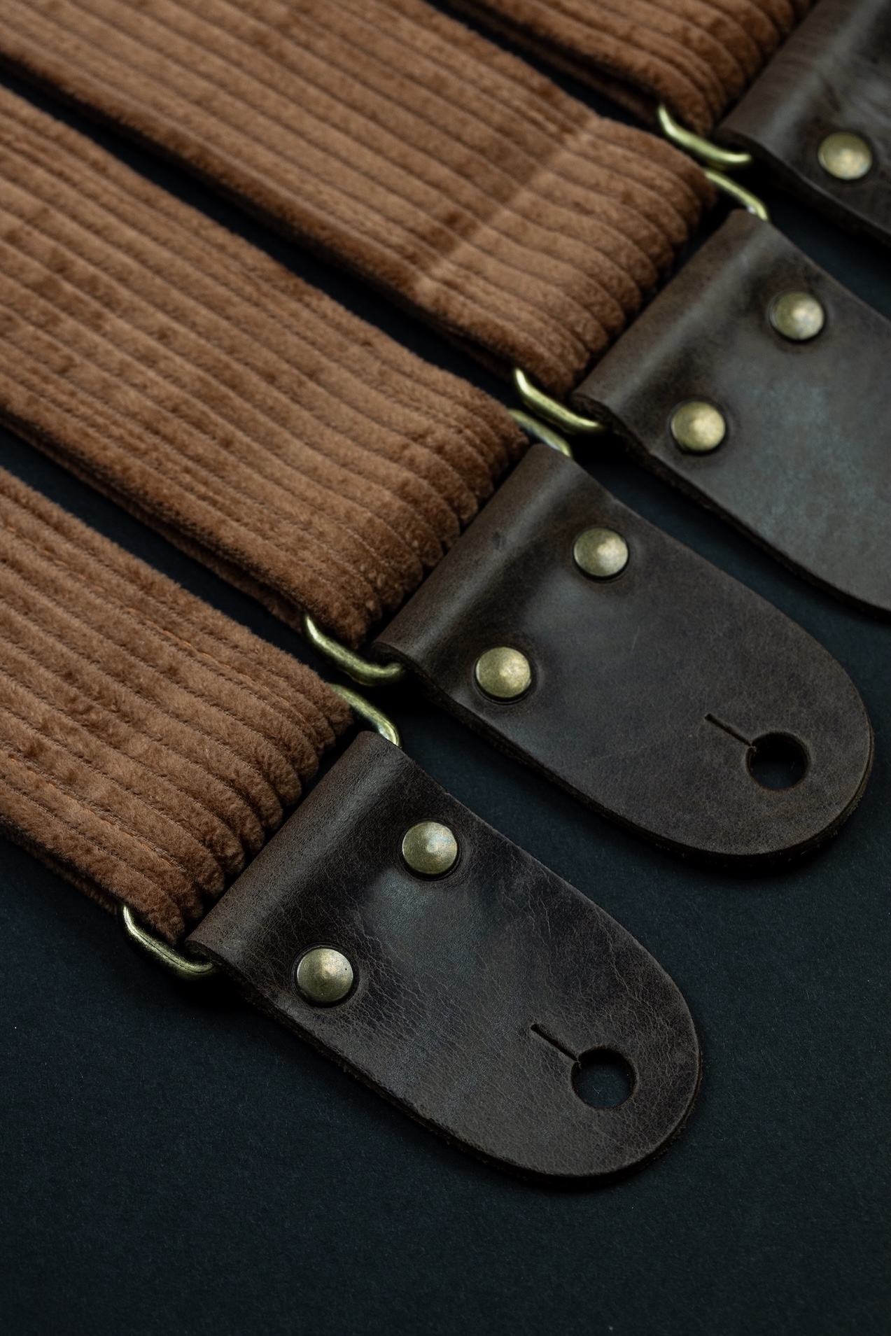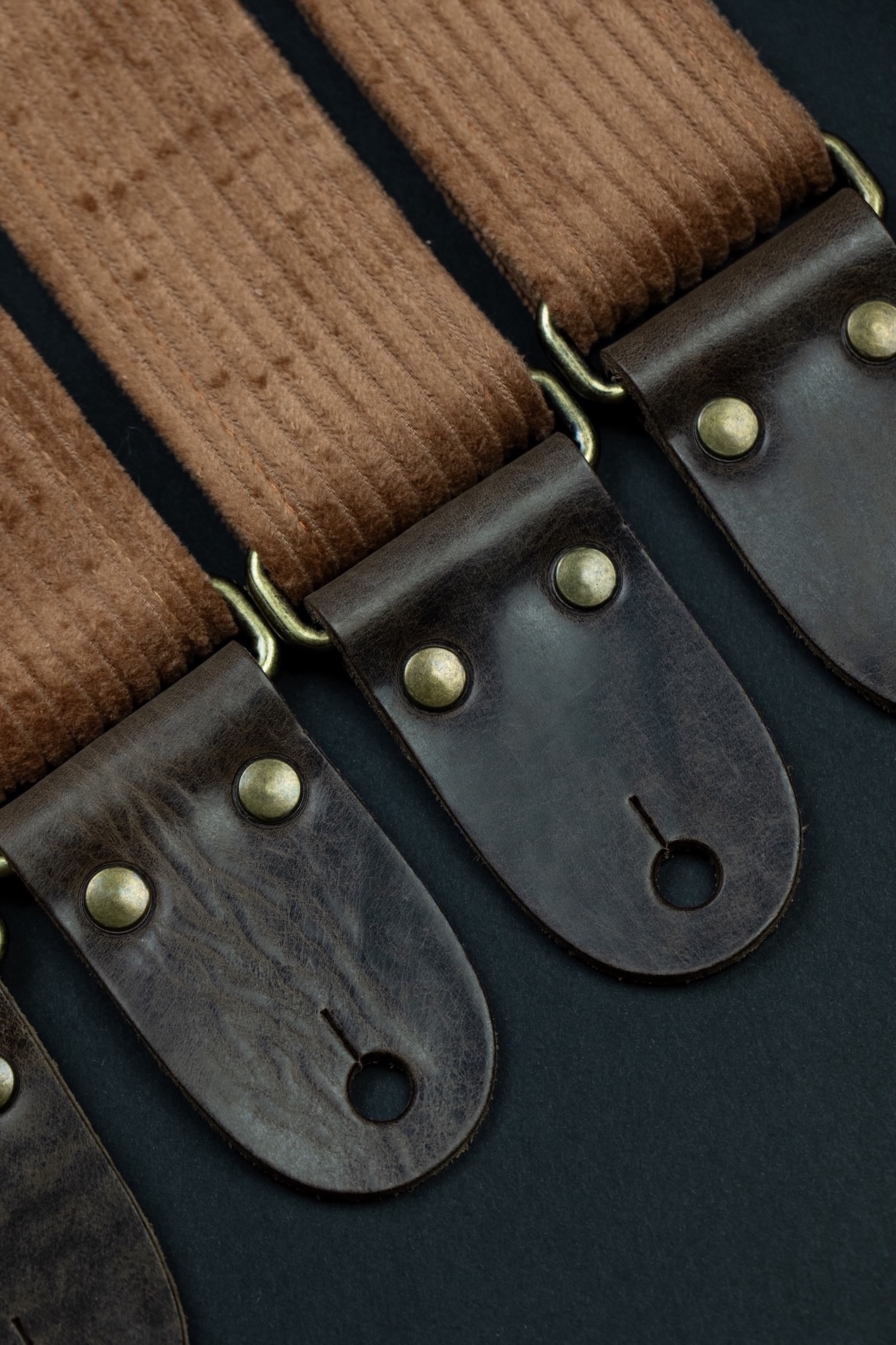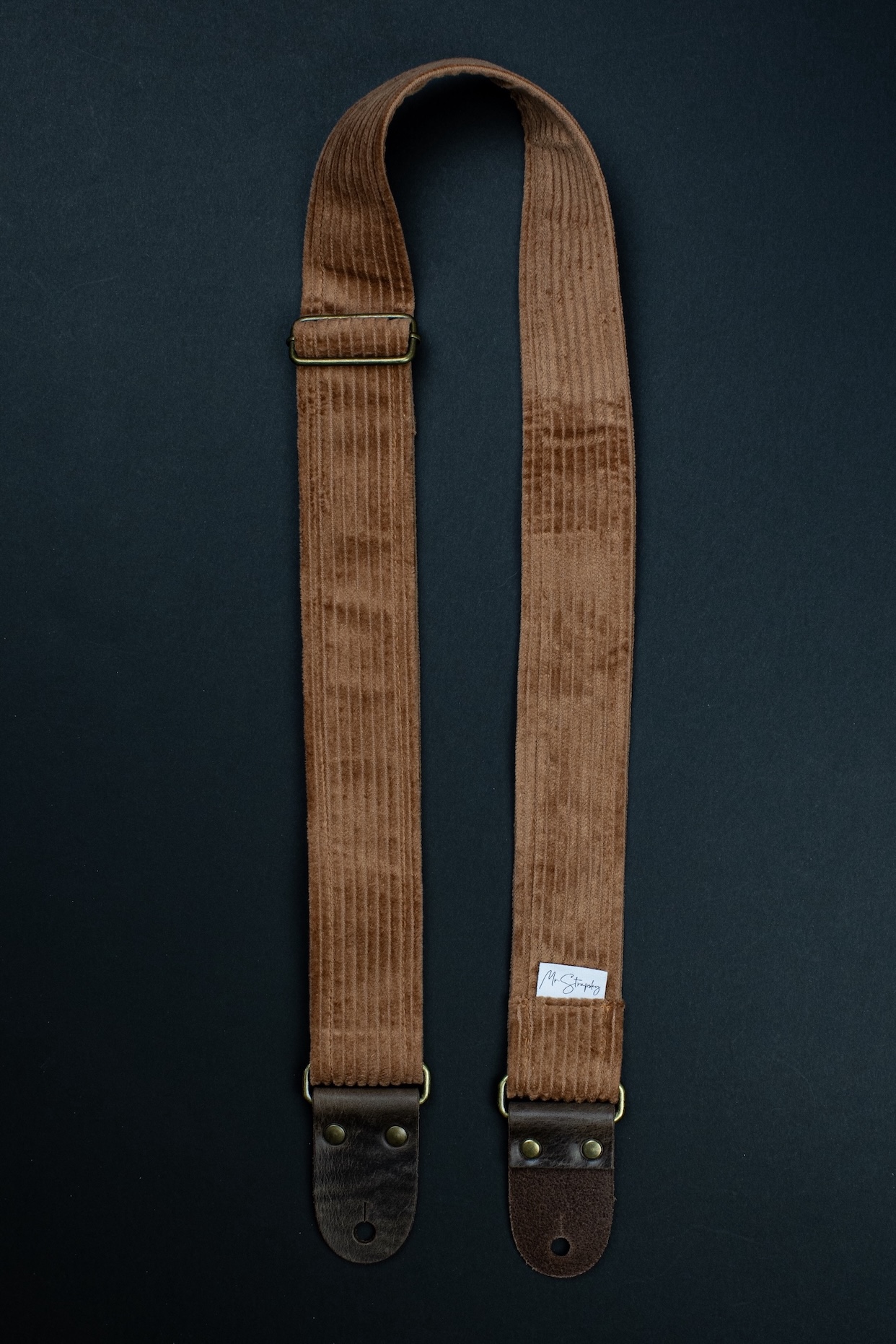 Classic corduroy guitar strap with vintage leather ends. Built to last, styled to stand out. Retro feel, modern durability.