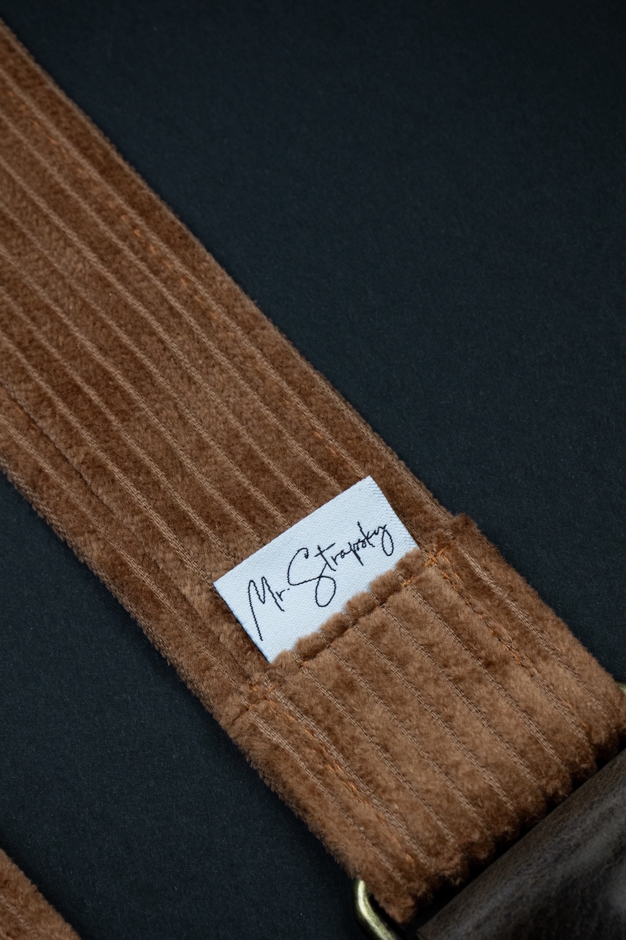The Vintage Corduroy Guitar Strap 2 Inch from Mr.Strapsky blends timeless style with everyday comfort. The soft corduroy fabric creates a true retro aesthetic while feeling smooth and natural on your shoulder. Paired with aged full grain leather ends, this strap delivers rugged character and reliable functionality. Whether you are on stage, recording in the studio, or practicing at home, it adds a touch of classic style to your performance.